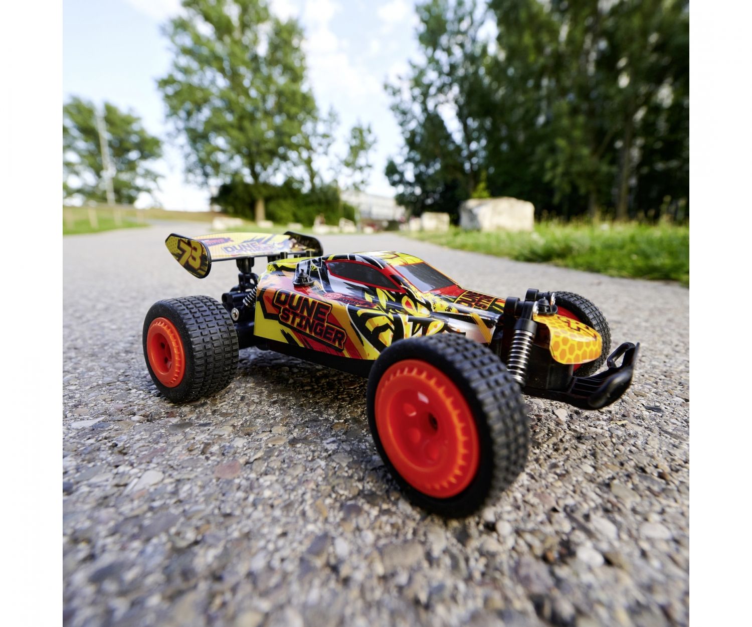 Der RC Dune Stinger RTR begeistert durch sein stabil konstruiertes Offroad-Design, komplett mit Federung, griffigen Reifen und detailgetreuer Buggy-Karosserie. Dank Plug-and-Play-Funktionalität – inkl. mitgelieferter Batterien – ist er direkt einsatzbereit. Die 2,4 GHz-Fernsteuerung liefert exakt reagierende Steuerung und ermöglicht den gleichzeitigen Betrieb mehrerer Modelle ohne Interferenzen. Ideal für actionreiche Rennen und abenteuerliche Fahrten.