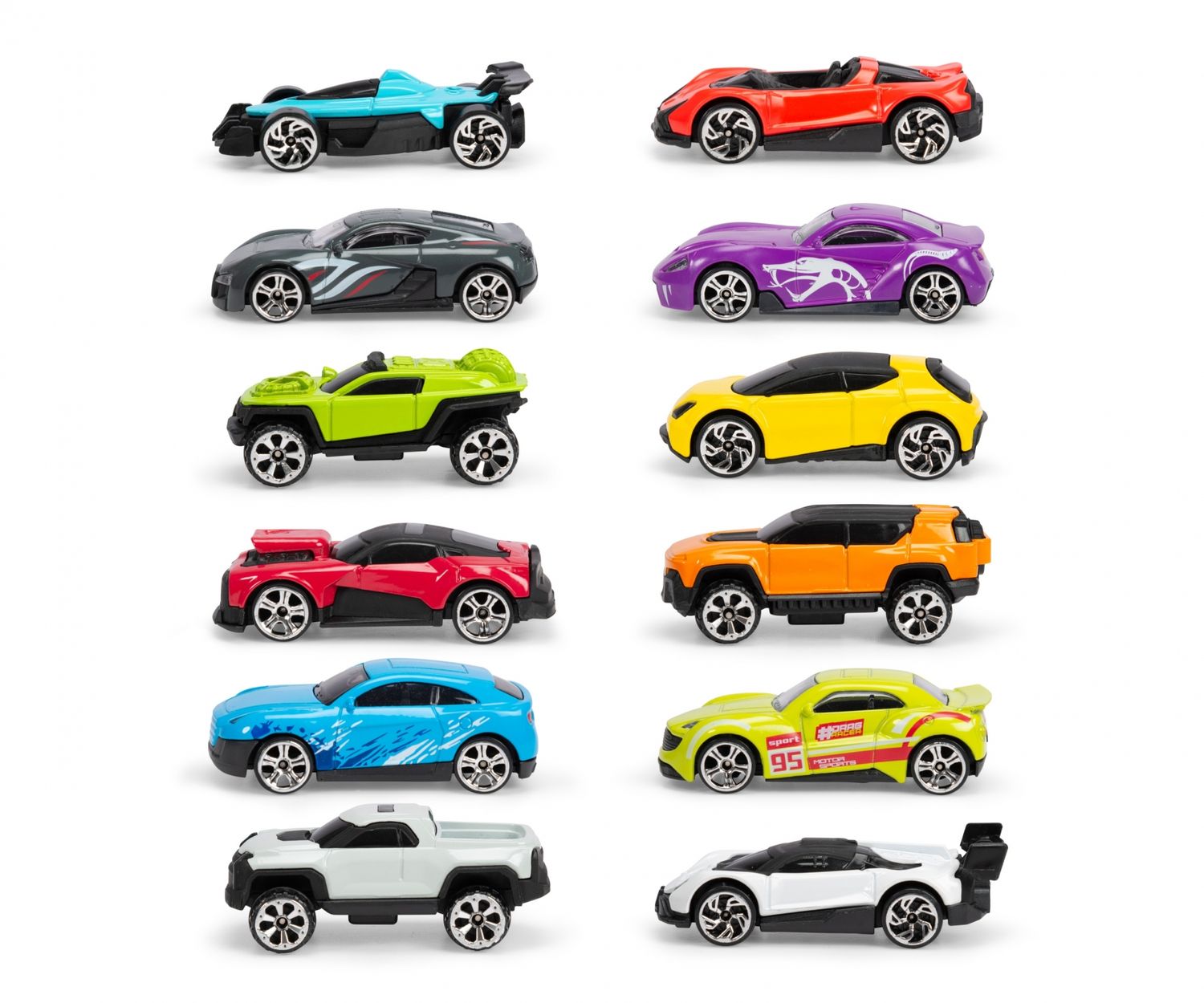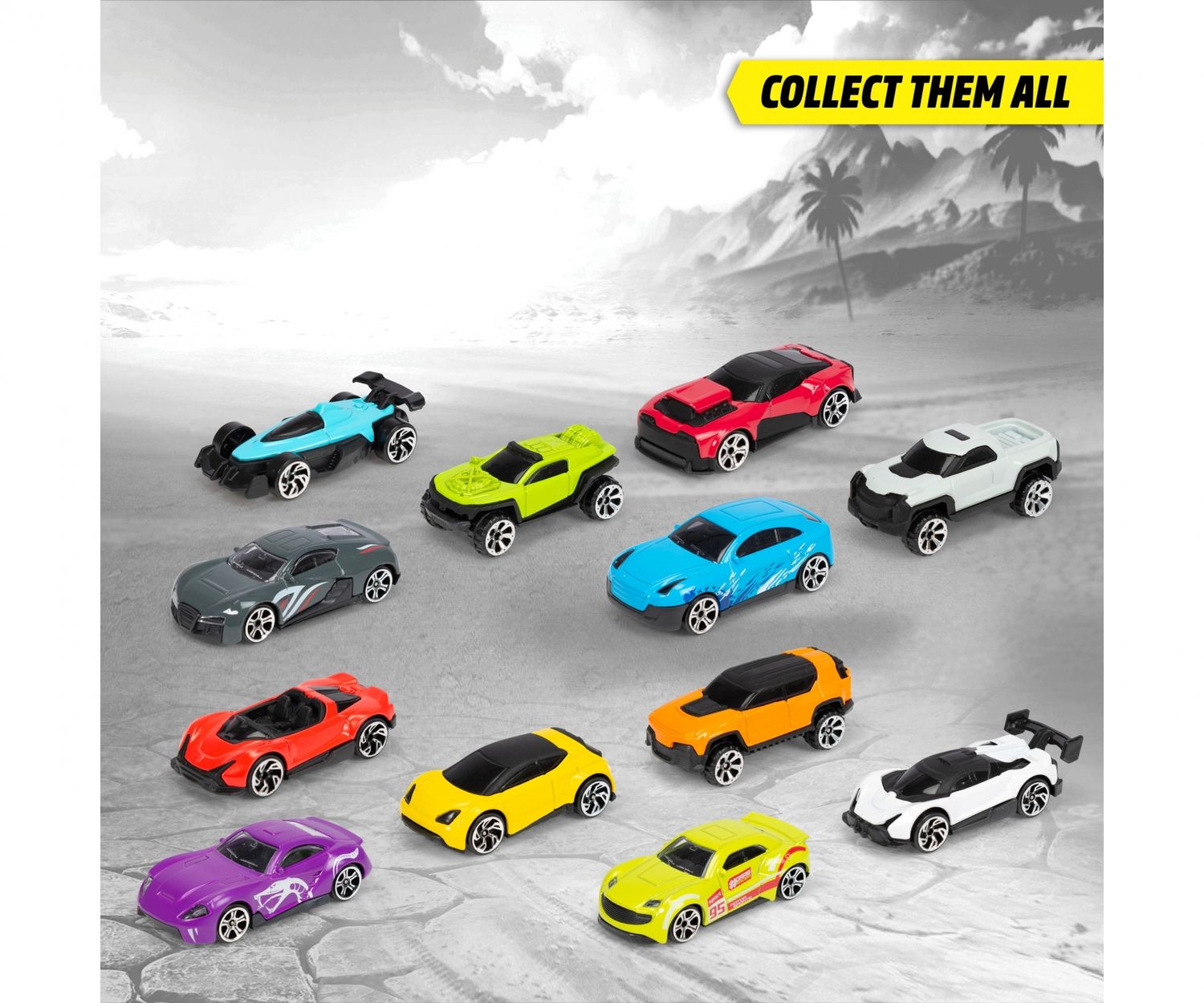 •Spielen & Sammeln - Entdecke 12 Rennauto-Modelle! Jedes Set enthält 3 unterschiedliche Autos. Das jeweilige Autoset wird per Zufall aus 4 Varianten ausgewählt, eine Vorauswahl ist nicht möglich.