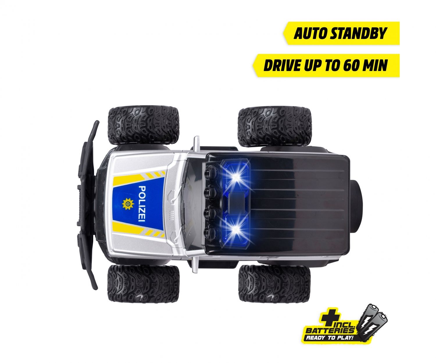 • inkl. 4x 1,5V-LR6 und 2x 1,5V-LR03 Batterien für Fahrzeug und Sender