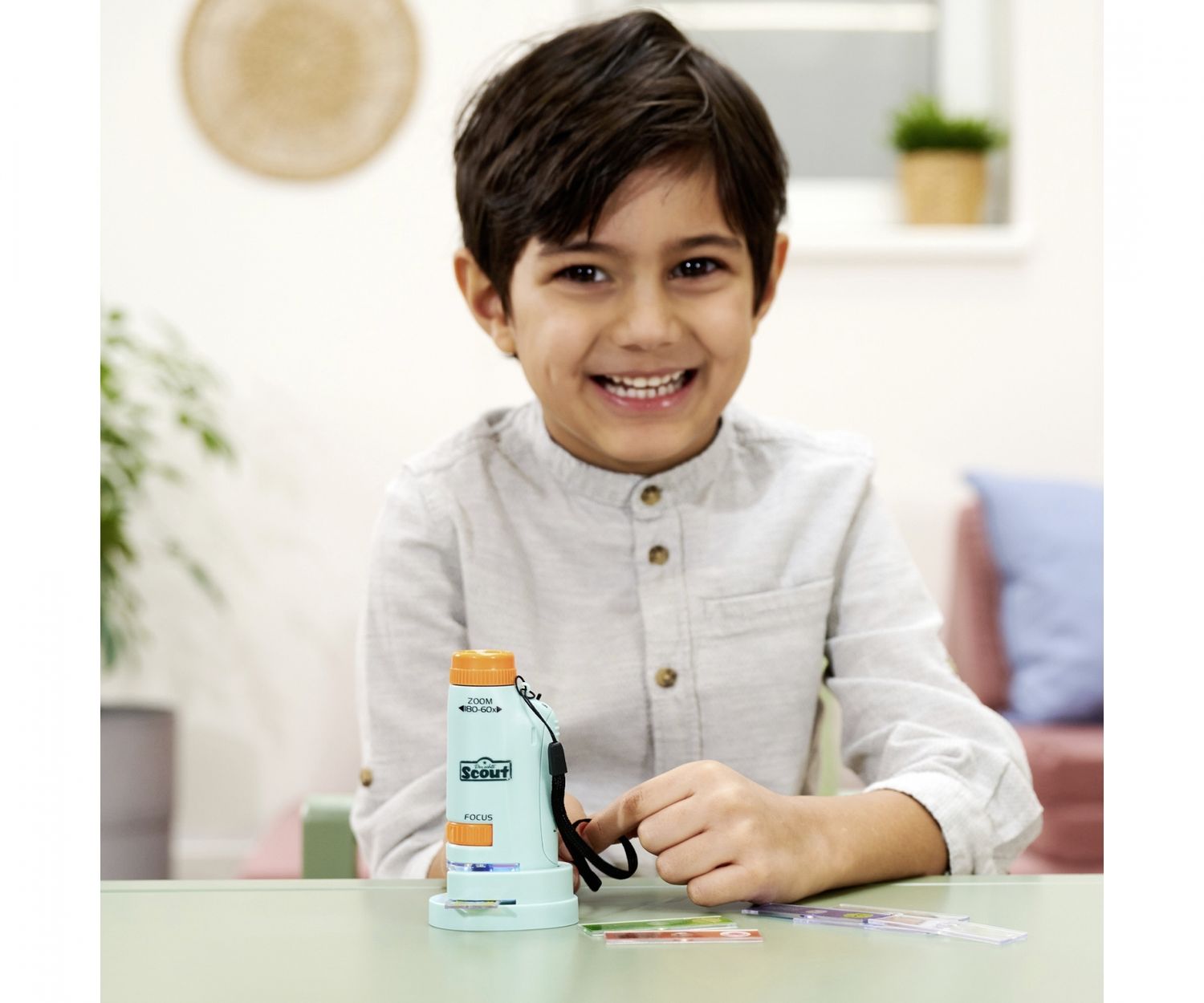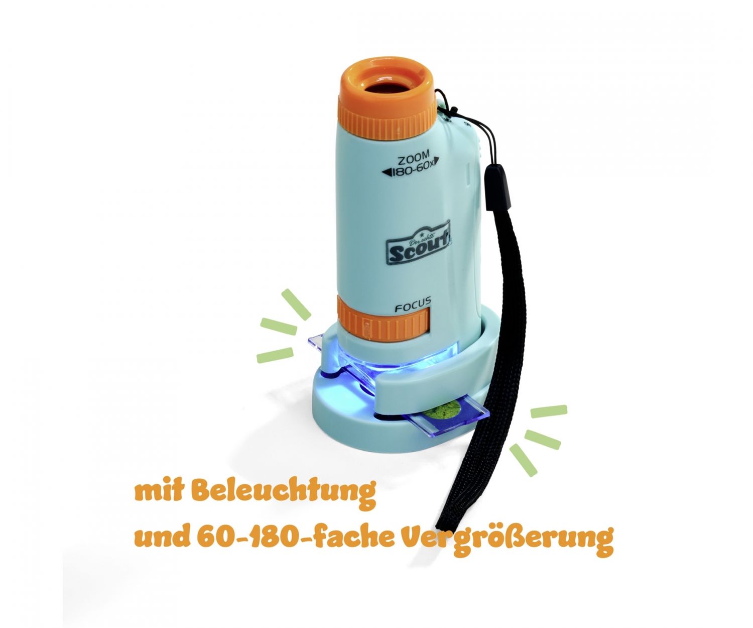 Welche feinen Verästelungen durchziehen eine Blattader? Wie viele Beinchen hat eine Ameise? Und wie sieht eigentlich eine Zwiebel mit 100-facher Vergrößerung aus? Mit dem Scout Taschenmikroskop kommen Kinder ab 5 Jahren den Geheimnissen der Natur auf die Spur! Das 60- bis 180-fache Vergrößerungsglas bringt selbst kleinste Details ans Licht, die mit bloßem Auge nicht zu erkennen sind. So wird der nächste Ausflug ins Freie zu einer aufregenden Entdeckungstour!