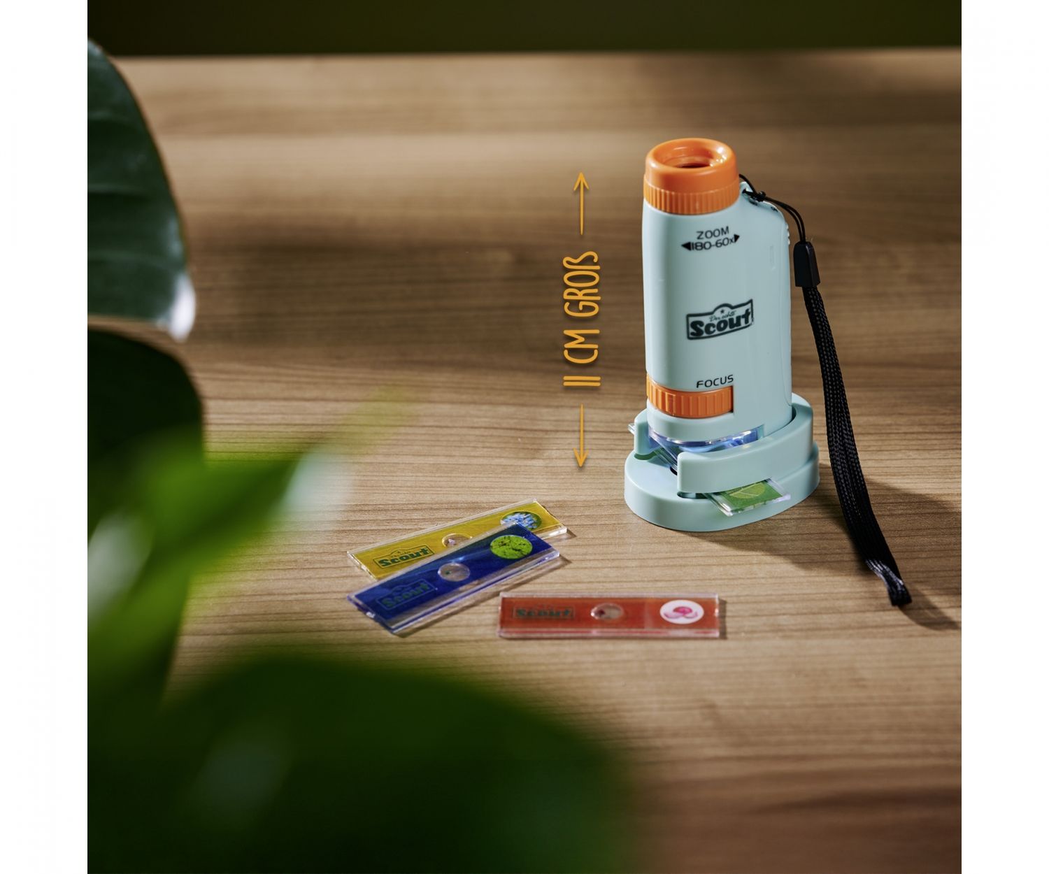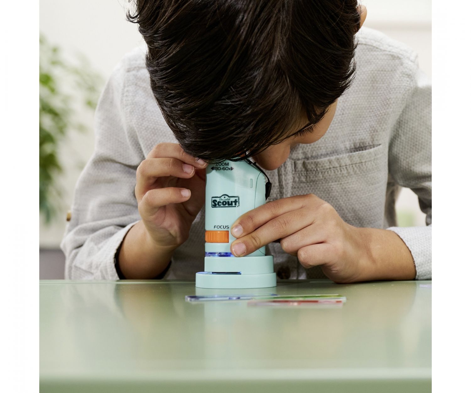 • Natur ganz nah - Ob Pflanzen oder Insekten: Die integrierte Beleuchtung sorgt für klare Sicht, während die Kinder mithilfe des Zoom- und Fokus-Rads das Taschen-Mikroskop präzise einstellen können.