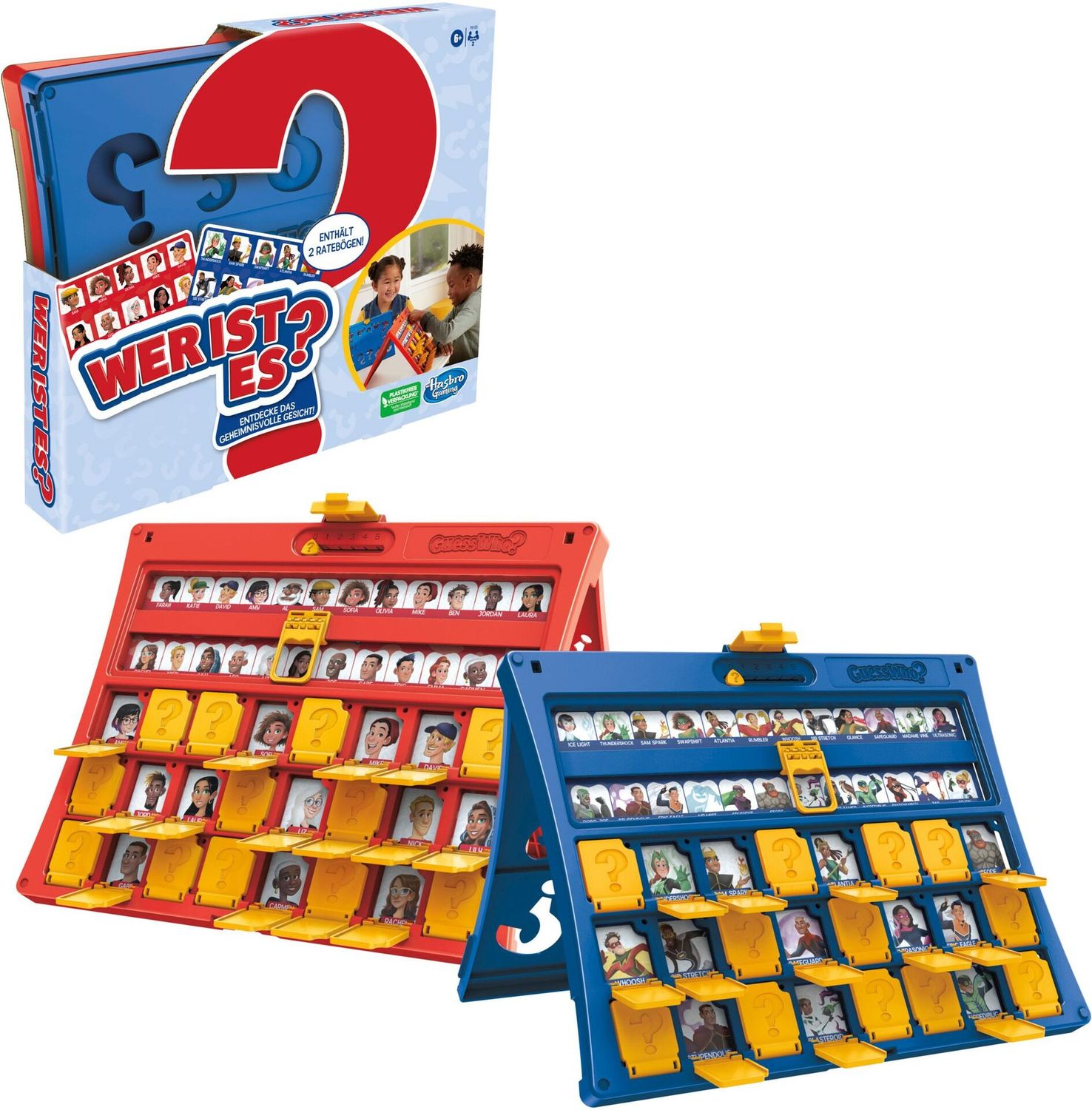 „Wer ist es?“ von Hasbro ist der zeitlose Klassiker unter den Ratespielen. Zwei Spieler treten gegeneinander an, stellen clevere Fragen und versuchen, die geheime Figur des Gegenspielers zu erraten. Ein unterhaltsames Familienspiel, das Generationen begeistert.