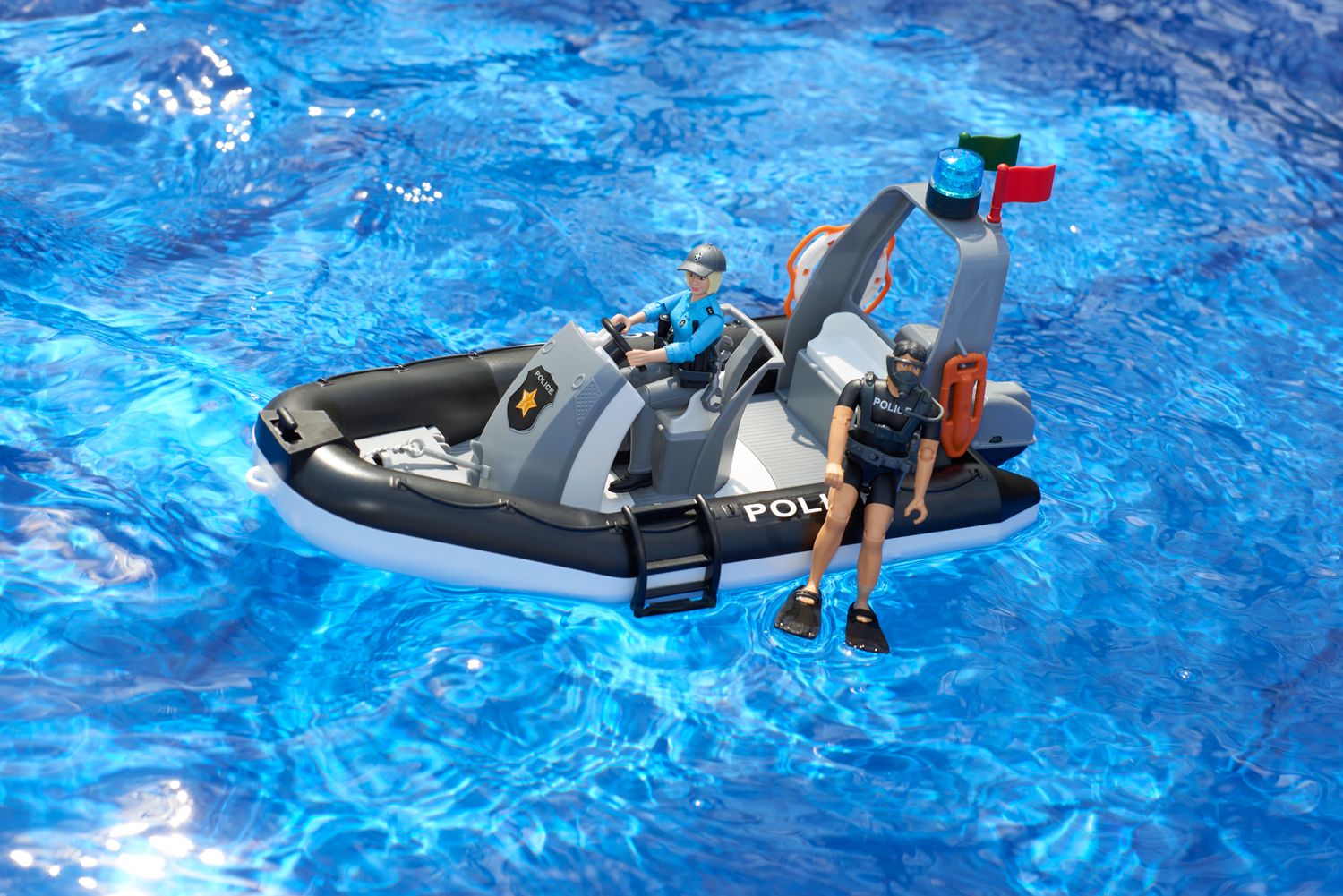 bruder 02507 RAM 2500 Polizei Pickup, L+S-Modul, Anhänger, Boot, 2 Figuren
