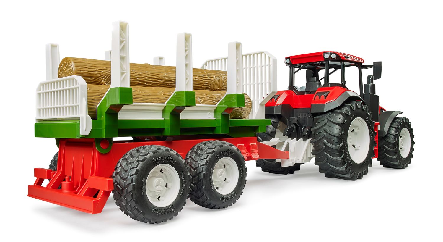 bruder 03453 ROADMAX Traktor mit Rückeanhänger und 3 Baumstämmen
