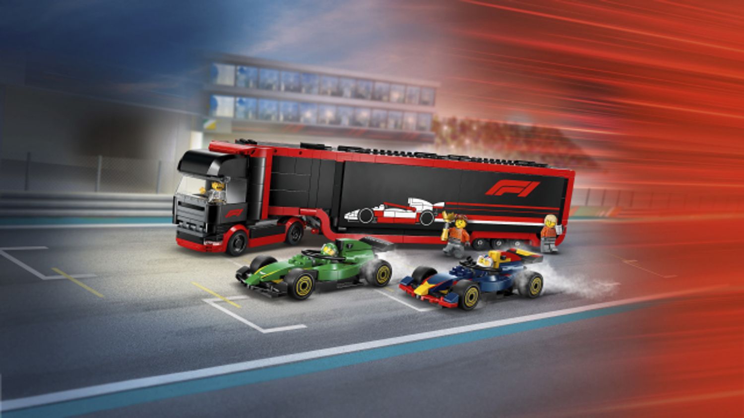 - Inhalt: 1086 LEGO Teile, F1 Transporter, RB20 und AMR24 Rennautos.