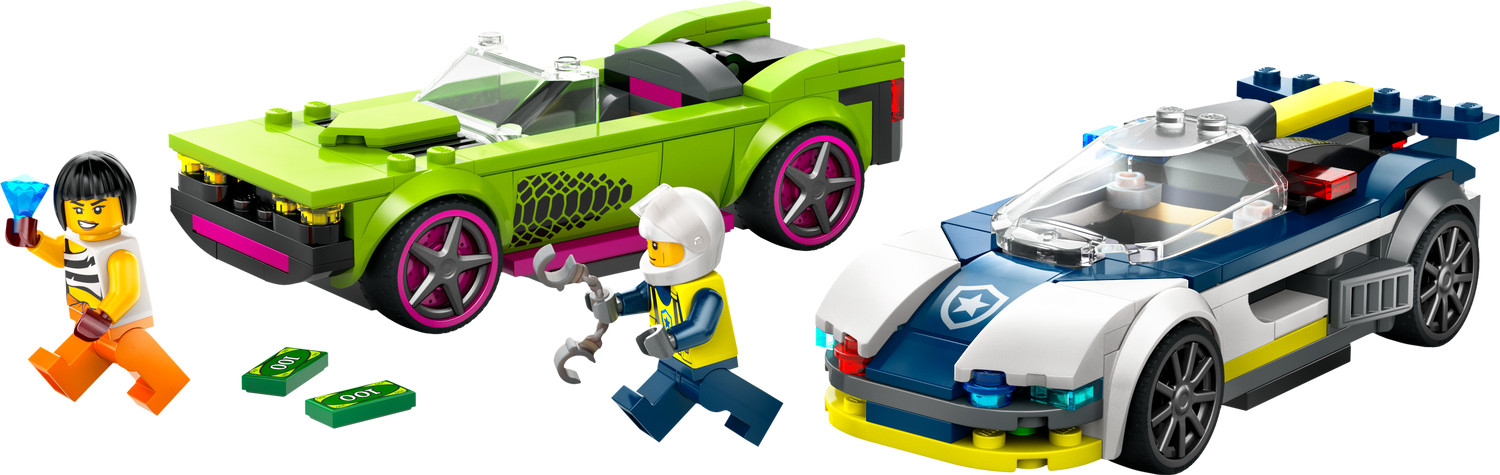 • Spannende Verfolgungsjagd: Erlebe actionreiche Szenen zwischen dem Polizeiauto und dem Muscle Car in der LEGO City.