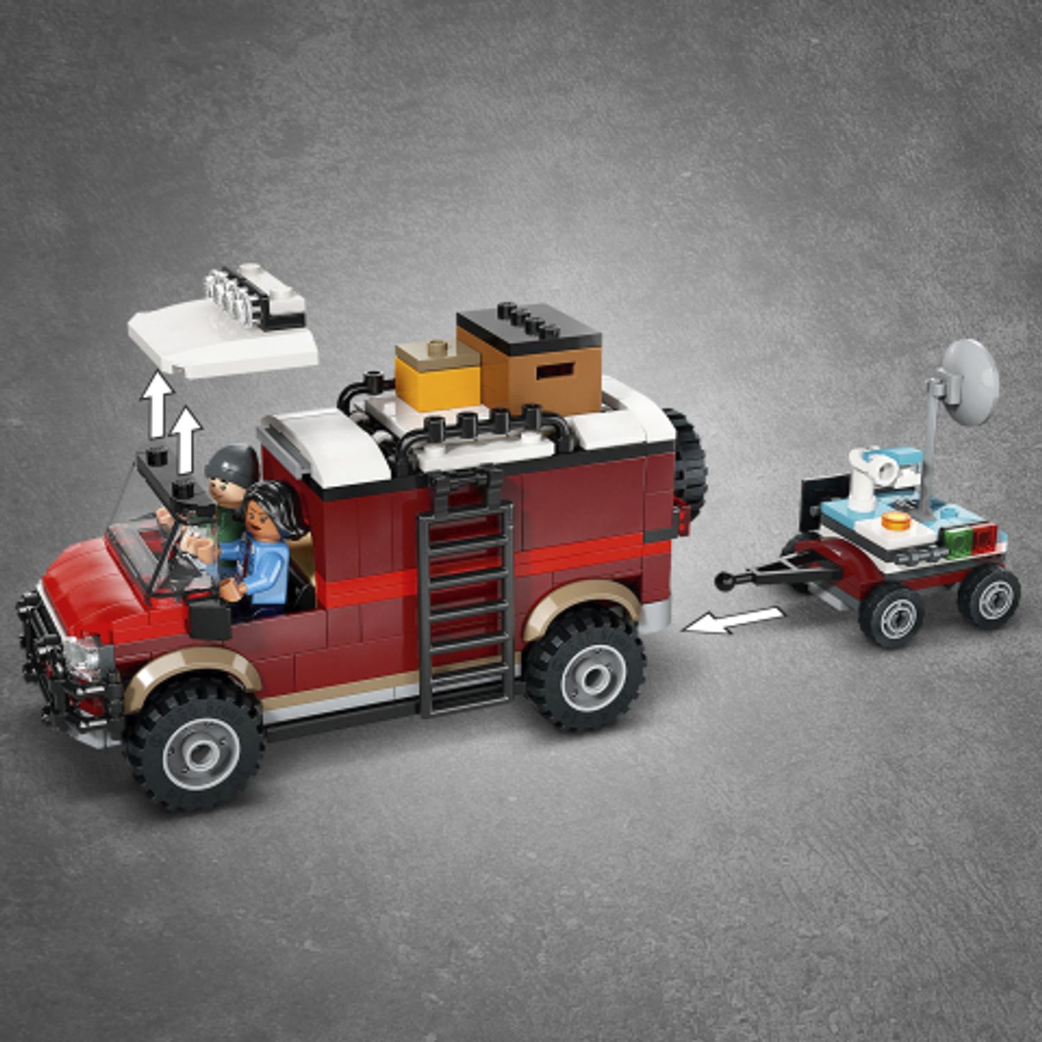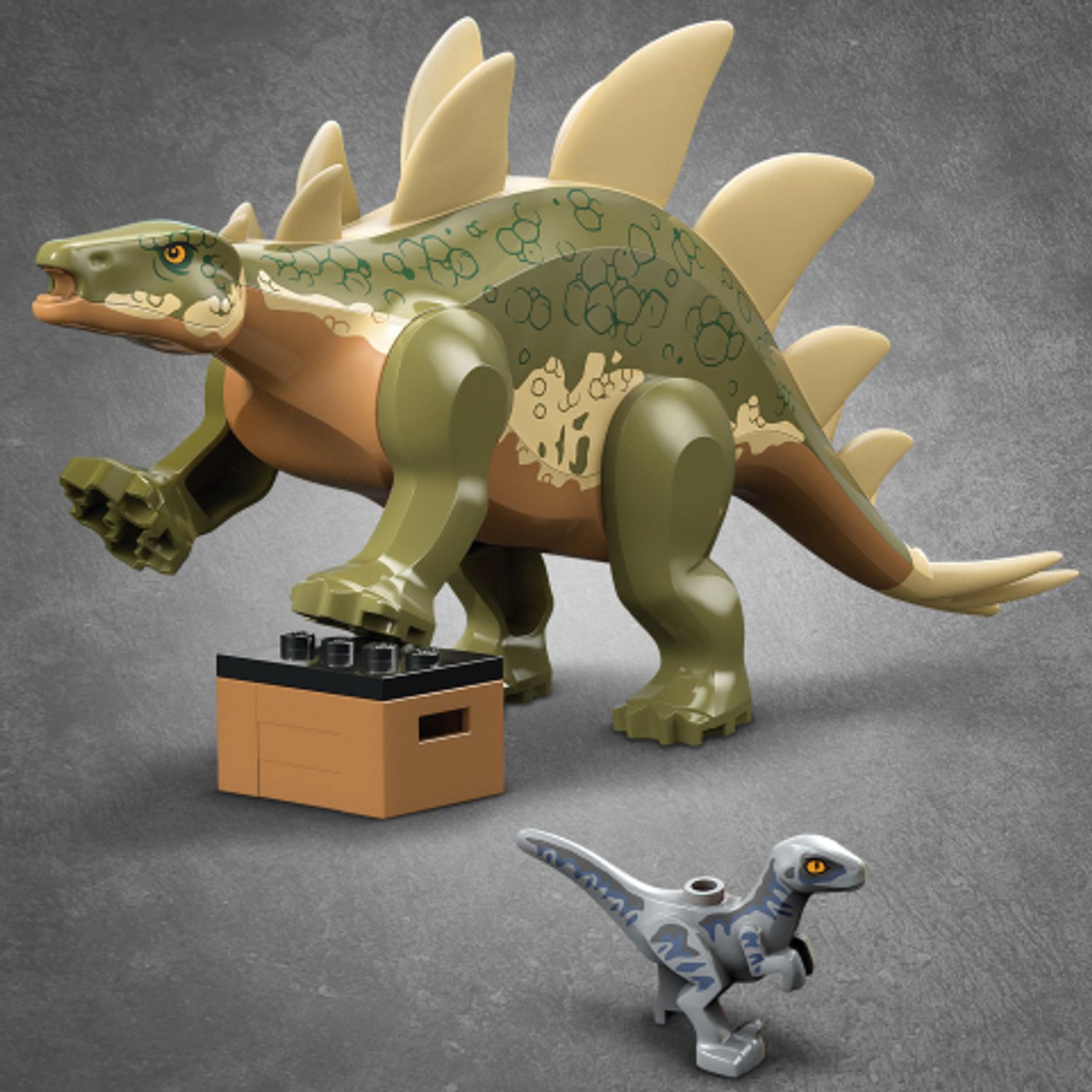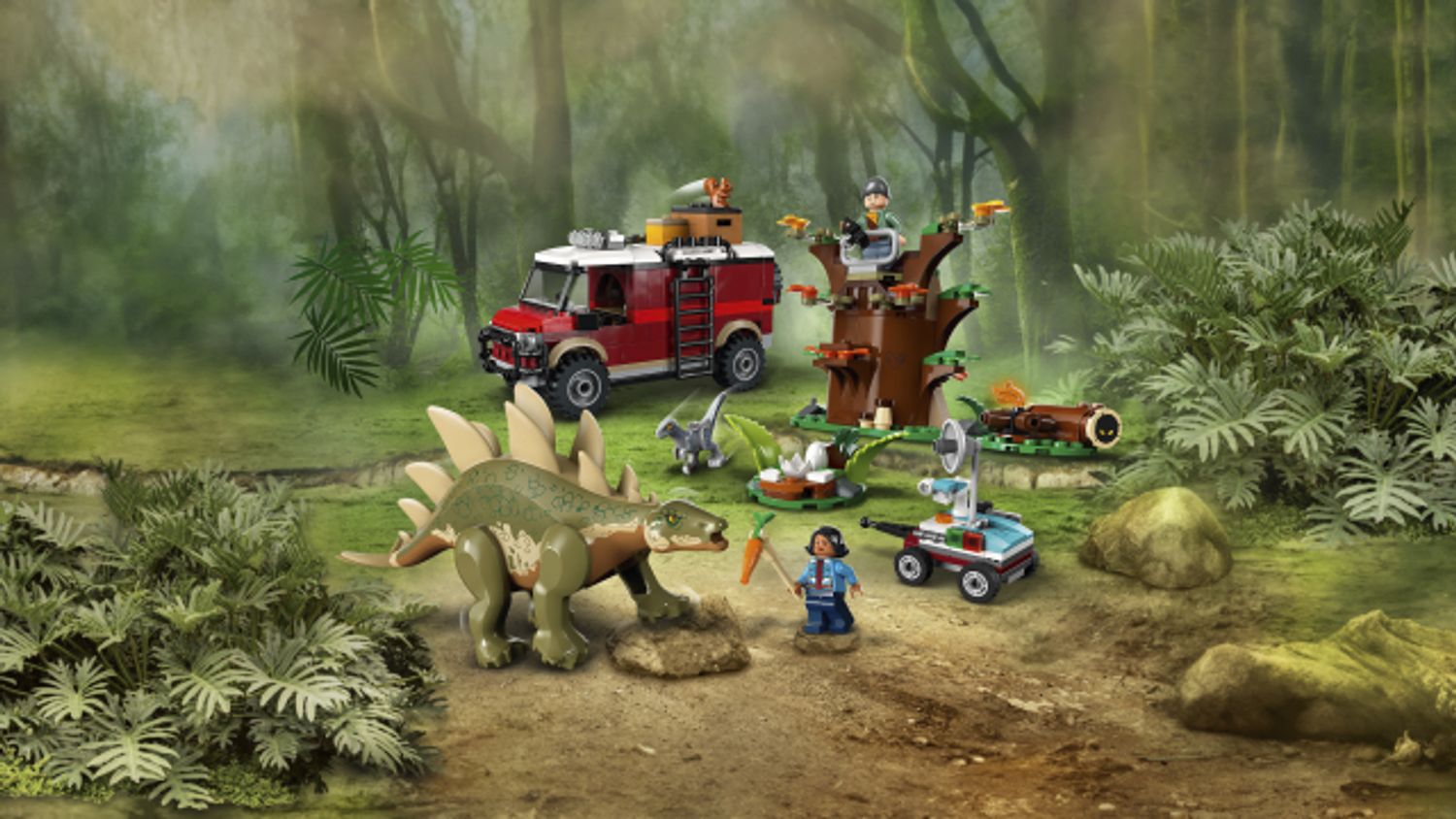 Hefte dich mit Sammy und Ben an die Fersen des mächtigen Stegosaurus! Kopple den Anhänger an den Geländewagen und mach dich auf die Suche nach dem gigantischen Pflanzenfresser. Dort ist ein Ausguck! Schnapp dir die Leiter und klettere hinauf, um Ausschau nach dem Dino zu halten. Was ist denn das dort im Gebüsch? Da ist der Stegosaurus! Versuche, ihn mit der Karotte anzulocken. Was für ein Tag!