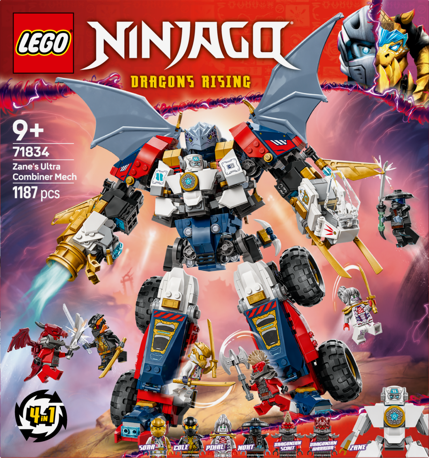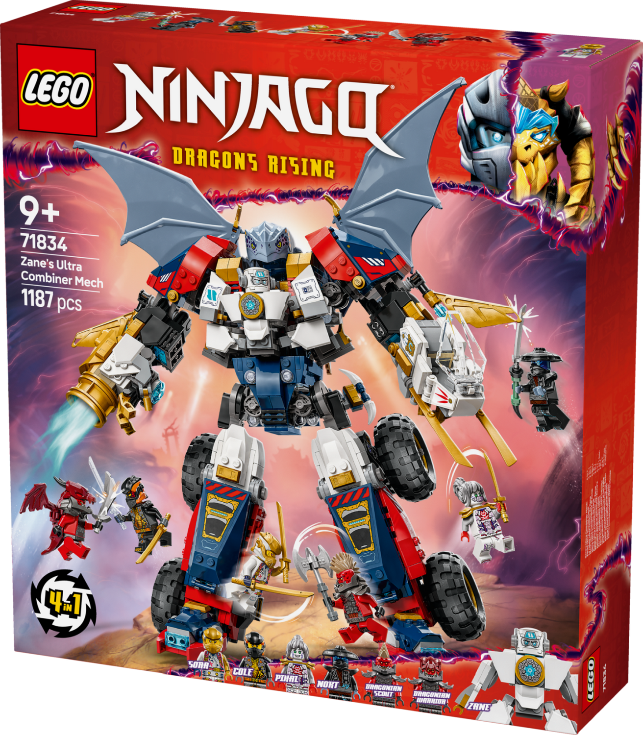 Der Zanes Ultra-Kombi-Mech ist das neueste Set in der NINJAGO®-Welt und bietet mit seinen 1187 Teilen unzählige Bau- und Spielmöglichkeiten. Die Kombination aus Menge und Qualität der Bausteine sorgt dafür, dass Kinder ab 9 Jahren ihren kreativen Ideen freien Lauf lassen können. Egal, ob sie den Mech im Kampf einsetzen oder ihn für ihre eigenen Geschichten verwenden möchten, die Möglichkeiten sind grenzenlos. Die beweglichen Gliedmaßen des Mechs ermöglichen realistische Bewegungen und actionreiche Szenen aus der NINJAGO®-Serie.