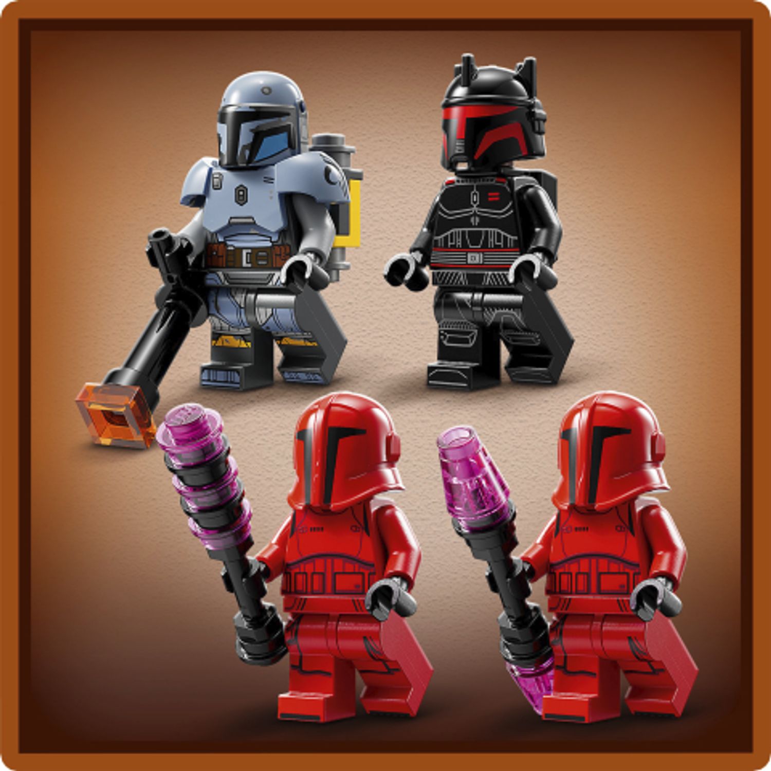 Das LEGO® Set 'Duell zwischen Paz Vizsla und Moff Gideon' wird deine Fantasie beflügeln und dich in die aufregende Welt von Star Wars™ entführen. Mit 289 Bausteinen kannst du das spannende Duell zwischen dem Mandalorianer Paz Vizsla und dem mächtigen Moff Gideon nachstellen.