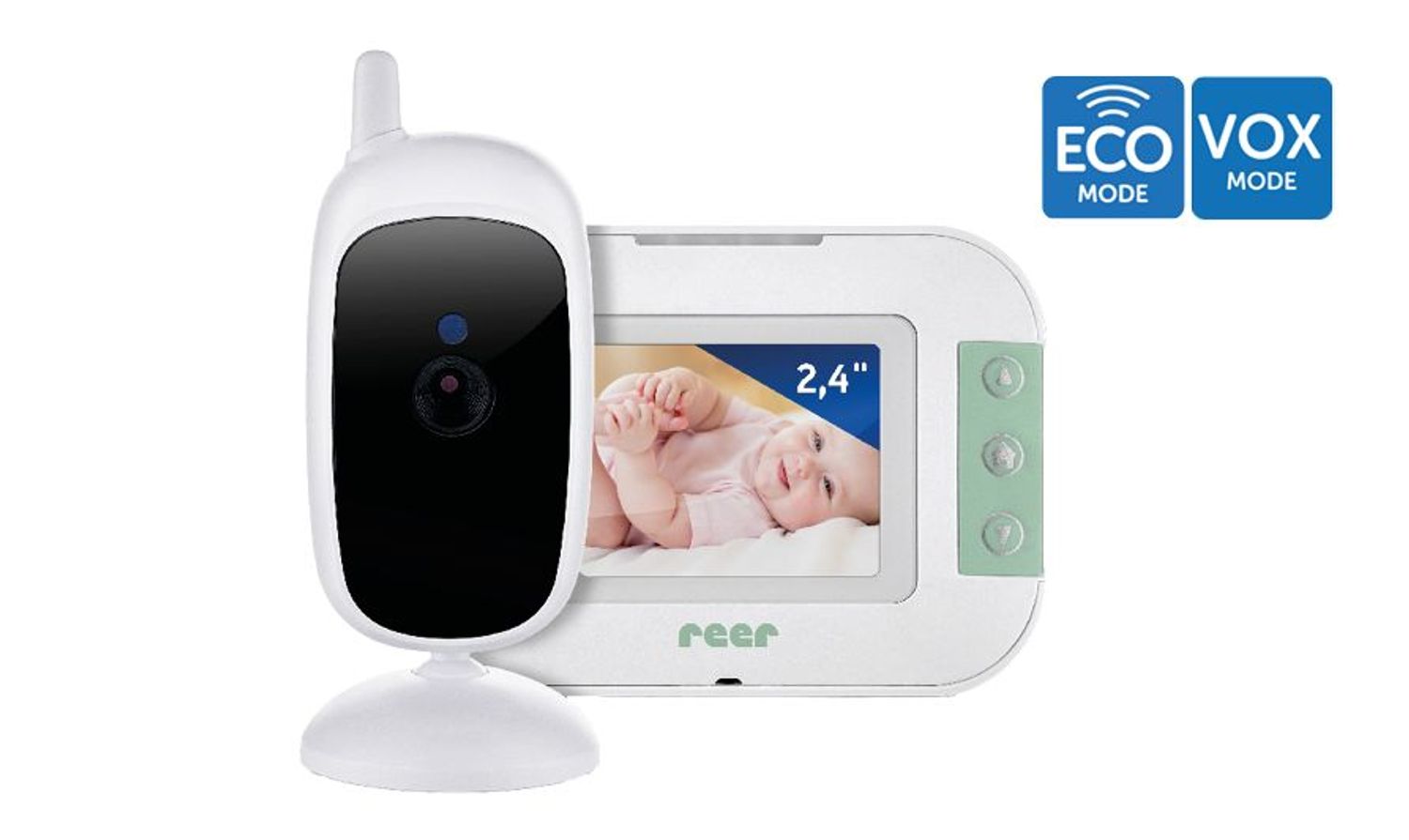Mit dem Video-Babyphone BabyCam S von reer behalten Eltern ihr Baby zuverlässig im Blick – bei Tag und bei Nacht. Dank digitaler FHSS-Übertragung werden Ton und Bild in hoher Qualität und völlig abhörsicher übermittelt. Die Kamera lässt sich flexibel ausrichten und zeigt über den 2,4″-Farbmonitor ein klares Bild des Kinderzimmers. Auch bei Dunkelheit garantiert die automatische Nachtsicht eine deutliche Darstellung. Durch den ECO-Modus wird die Strahlung im Ruhezustand auf null reduziert – die VOX-Funktion aktiviert das Gerät erst, wenn Ihr Baby ein Geräusch von sich gibt. Praktische Extras wie Temperaturanzeige, Vibrationsalarm und acht eingebaute Schlafmelodien sorgen für zusätzliche Sicherheit und Komfort. So haben Sie Ihr Baby immer im Blick und können sich entspannt anderen Dingen widmen.