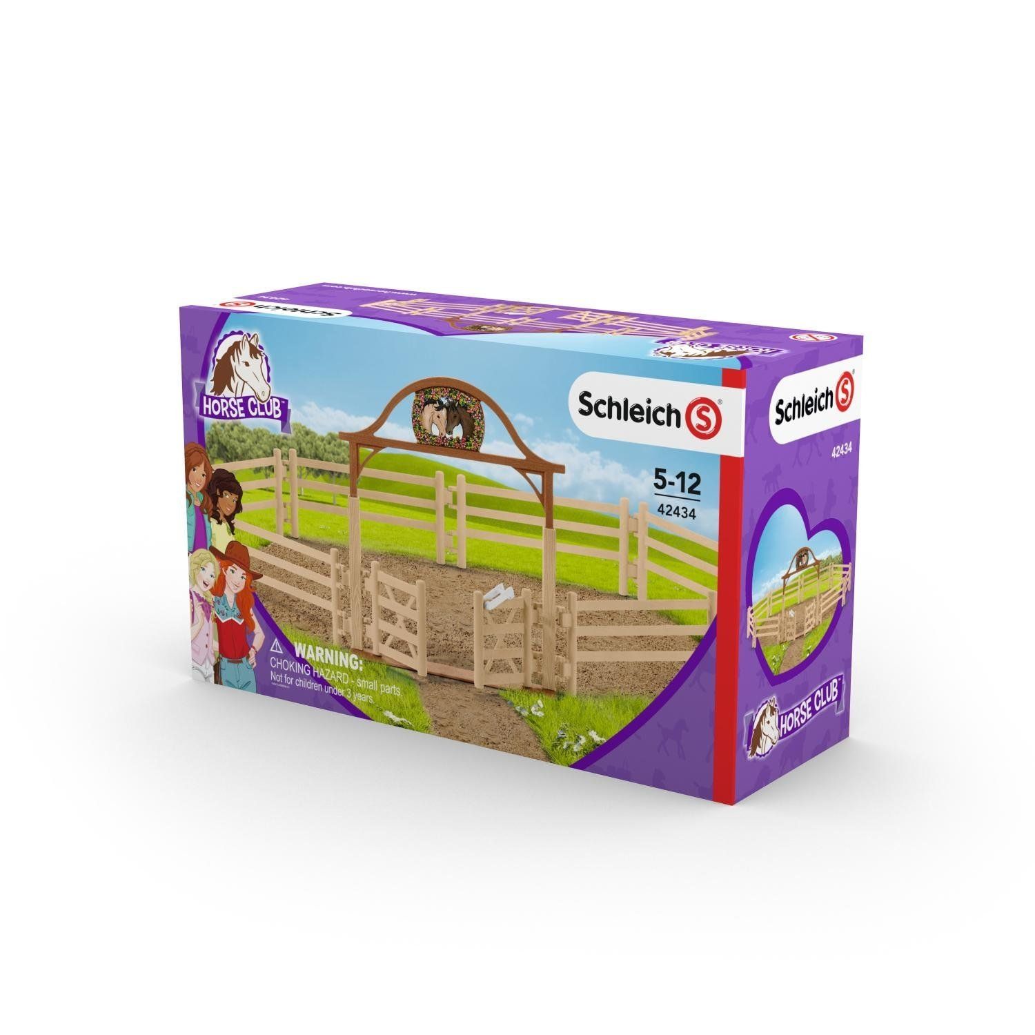Wann immer neue Pferde oder Ponys in Lakeside eintreffen, werden sie zuerst auf die Pferdekoppel gebracht. Dort können sie in Ruhe grasen und sich untereinander begrüßen. Die Pferdekoppel mit Eingangstor ist nicht nur ein wesentliches Element des Schleich Horse Club, sondern fördert auch das kreative Spiel. Kinder können mit den detailgetreu gestalteten Figuren faszinierende Geschichten zum Leben erwecken, während sie ihre sozialen Fähigkeiten entwickeln und ihre motorischen Fähigkeiten herausfordern.