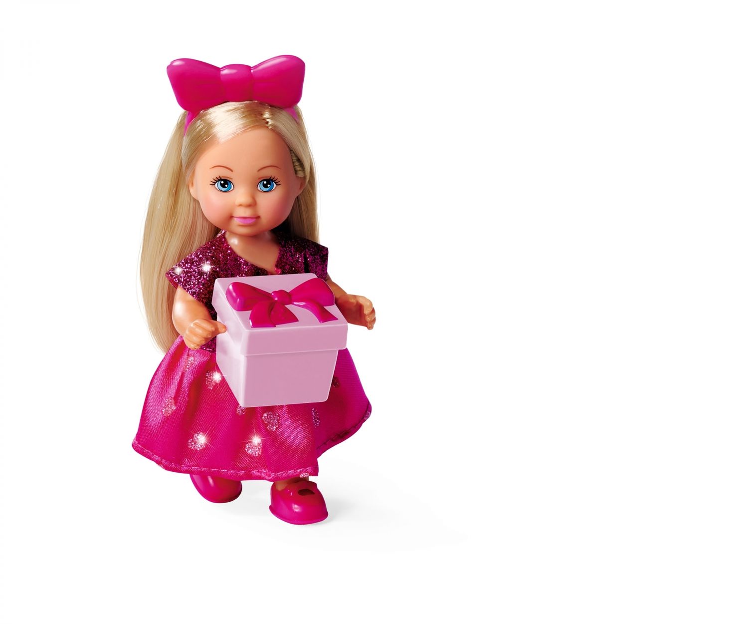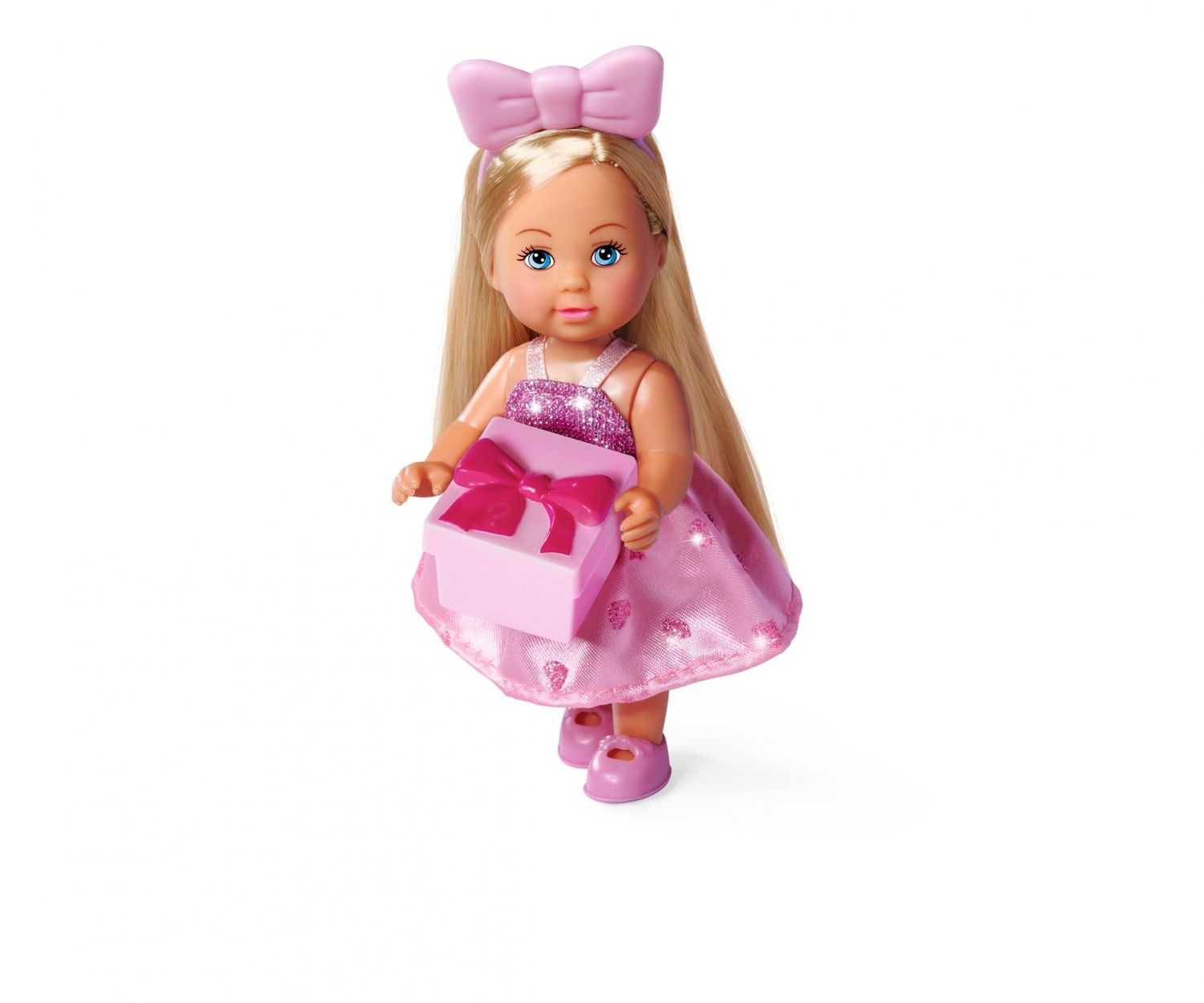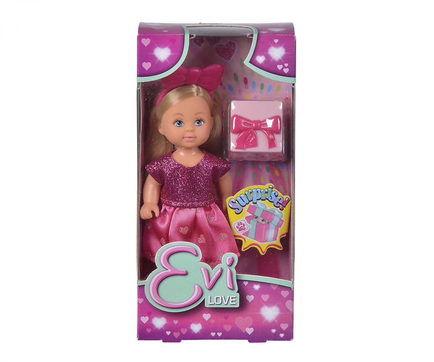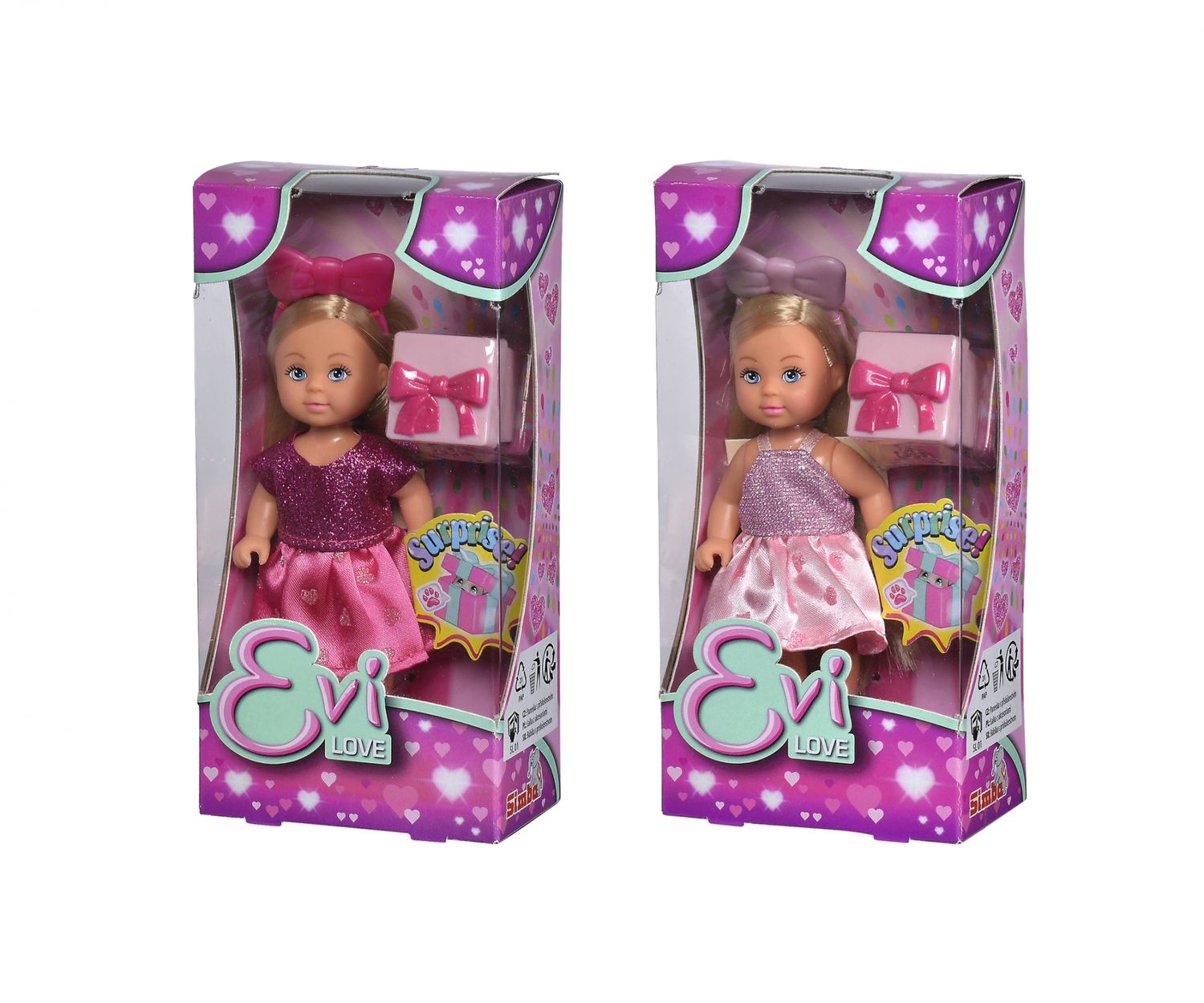 Spannendes Zubehör – Evi trägt eine Schleife im Haar und bringt eine Überraschungsbox mit, die für zusätzlichen Spielspaß sorgt. Sie ist in zwei Varianten erhältlich, entweder in einem pinkfarbenen oder hellrosanen Kleid. Die Auswahl erfolgt zufällig, es wird nur ein Artikel geliefert, eine Vorauswahl ist nicht möglich.