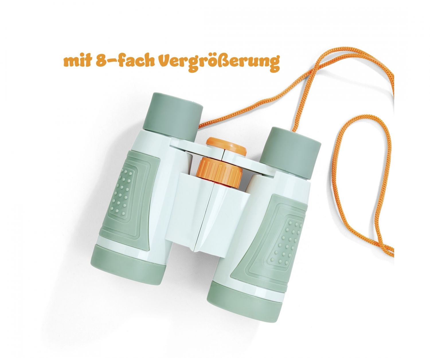 Das 11 cm große Fernglas wurde speziell für kleine Hände entwickelt. Durch die bewegliche Mittelachse kann es individuell an das Gesicht angepasst werden, während das gummierte Gehäuse mit rutschfesten Griffen für sicheren Halt sorgt und das Outdoor-Spielzeug besonders angenehm in der Verwendung macht. Und mit der praktischen Umhänge-Kordel ist das Fernglas sofort griffbereit, sollte plötzlich ein Reh auftauchen oder ein Greifvogel seine Kreise am Himmel ziehen. Ein wunderbares Geschenk für neugierige Kids, die aufregende Abenteuer erleben wollen!