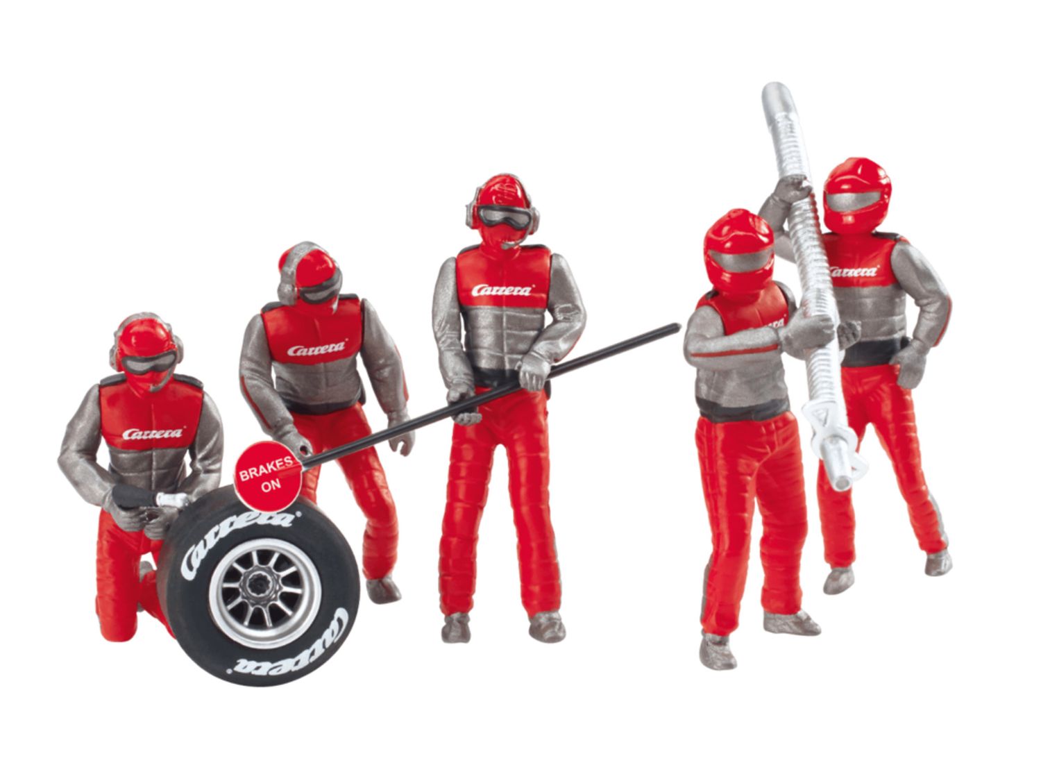 Mechaniker Figurensatz im Carrera DesignDIGITAL 124, DIGITAL 132 und EVOLUTIONGeeignet als De koration f##r die Rennbahn Ohne sie l#¤uft nichts rund: Die Mechaniker Beim Boxenstopp sorg en die Mechaniker daf##r, dass Reifen gewechselt, technische Probleme behoben und Reparaturen am Auto vorgenommen werden. Klar, dass die Mechaniker dann auch auf der Carrera Bahn nicht fehlen d##rfen! D ie Carrera Mechaniker-Crew besteht aus f##nf Figuren und begeistert im roten Dress. Neben der detailg etreuen Verarbeitung ##berzeugen die modernen Figuren auch mit ihren verschiedenen, positionierbaren bzw. drehbaren K#¶rperteilen. Die Mechaniker machen eine hervorragende Figur und erg#¤nzen perfekt Dei ne Carrera Bahn. F##r eine authentische, liebevoll gestaltete Rennstrecke ist mit dem Mechaniker-Figu rensatz auf jeden Fall gesorgt! Somit findet ein Boxenstopp mit Mechanikern, wie in einem echten Ren nen statt.