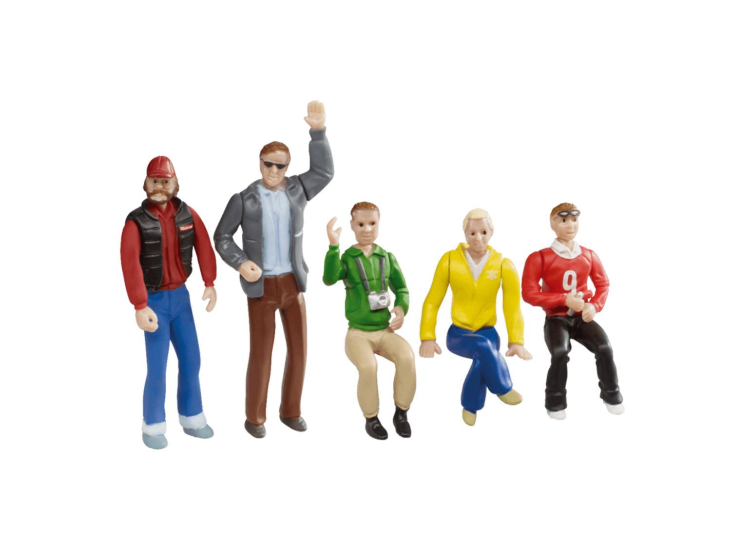 Moderne Dekorationsm#¶glichkeit f##r die Rennbahnstrecke! Die Ausarbeitung der colorierten Figuren ist extrem detailgetreu und es gibt verschiedene, positionierbare bzw. drehbare K#¶rperteile! Der kleine Figurensatz besteht aus 5 Figuren: 3 sitzende Figuren 2 stehende Figuren