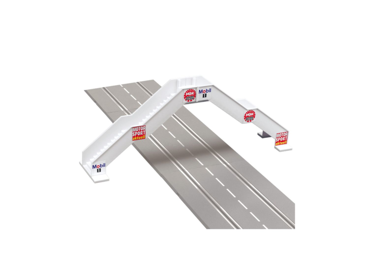 Fu##g#¤ngerbr##cke f##r zwei SpurenDIGITAL 124, DIGITAL 132 und EVOLUTIONGeeignet als Dekoration f##r die Rennbahn Sieger Modernes Dekoelement f##r Deine Carrera Bahn Wer seine Carrera Rennstre cke mit liebevollen Details abrunden m#¶chte, macht mit dieser Fu##g#¤ngerbr##cke alles richtig. Das Geb #¤udeelement setzt dekorative Akzente auf der Bahn und schafft ein noch authentischeres Gesamtbild. D ie Br##cke f##r die Fu##g#¤nger besteht aus Plastikbaus#¤tzen und kann mit nur wenigen Handgriffen ganz e infach zusammengebaut werden. Geeignet ist das Dekoobjekt f##r zwei Spuren und hat dabei folgende Ma## e: 47 cm x 17,5 cm x 10 cm (Breite x H#¶he x Tiefe). Mit den beiliegenden Stickerb#¶gen kannst Du die Br##cke versch#¶nern und individuell gestalten. Somit haben die kleinen Figuren die M#¶glichkeit, ##bera ll am Rennen teilzunehmen und zu zujubeln!