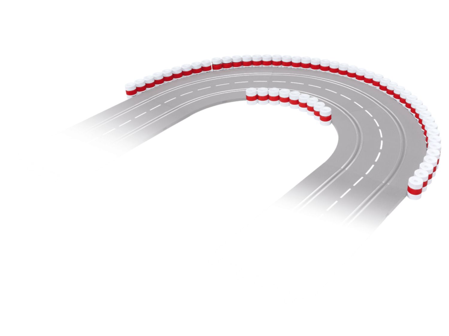 Reifenstapel f##r die Rennbahn DIGITAL 124, DIGITAL 132 und EVOLUTIONGeeignet f##r die Rennbahn-De koration F##r mehr Sicherheit auf der Rennstrecke Mit den Reifenstapeln sorgst Du f##r me hr Sicherheit auf Deiner Carrera Bahn! Die Reifen stoppen au##er Kontrolle geratene Slotcars und verh indern schwere Crashs und Unf#¤lle. So werden nicht nur Fahrer und Auto gesch##tzt, sondern auch Zusch auer und Streckenpersonal. Die Reifenstapel sorgen f##r ein noch authentischeres Ambiente und kommen im Ma##stab 1:24 daher. Sie eignen sich also perfekt f##r die Carrera DIGITAL 124, Carrera DIGITAL 132 und Carrera EVOLUTION Rennbahn. Du erh#¤ltst 24 Halterungen und sechs Reifenelemente mit jeweils neu n Reifenstapeln und drei Reifen pro Stapel. Die Reifenketten kannst Du an einer beliebigen Stelle ei nsetzen.