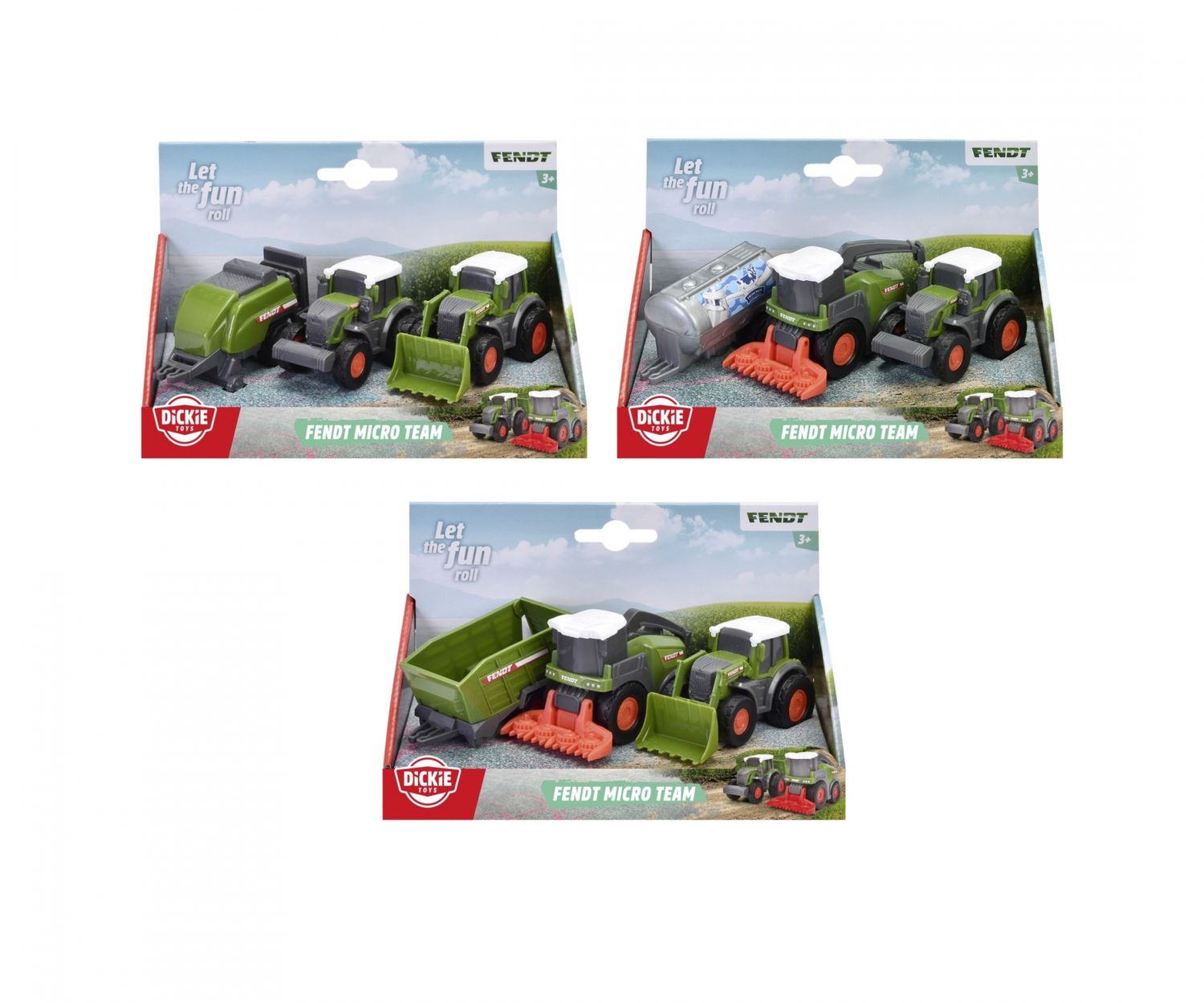 Dickie Toys – Fendt Micro Team (9 cm) – Traktor-Set mit Anhänger, Original Fendt, zufällige Auswahl, für Kinder ab 3 Jahren