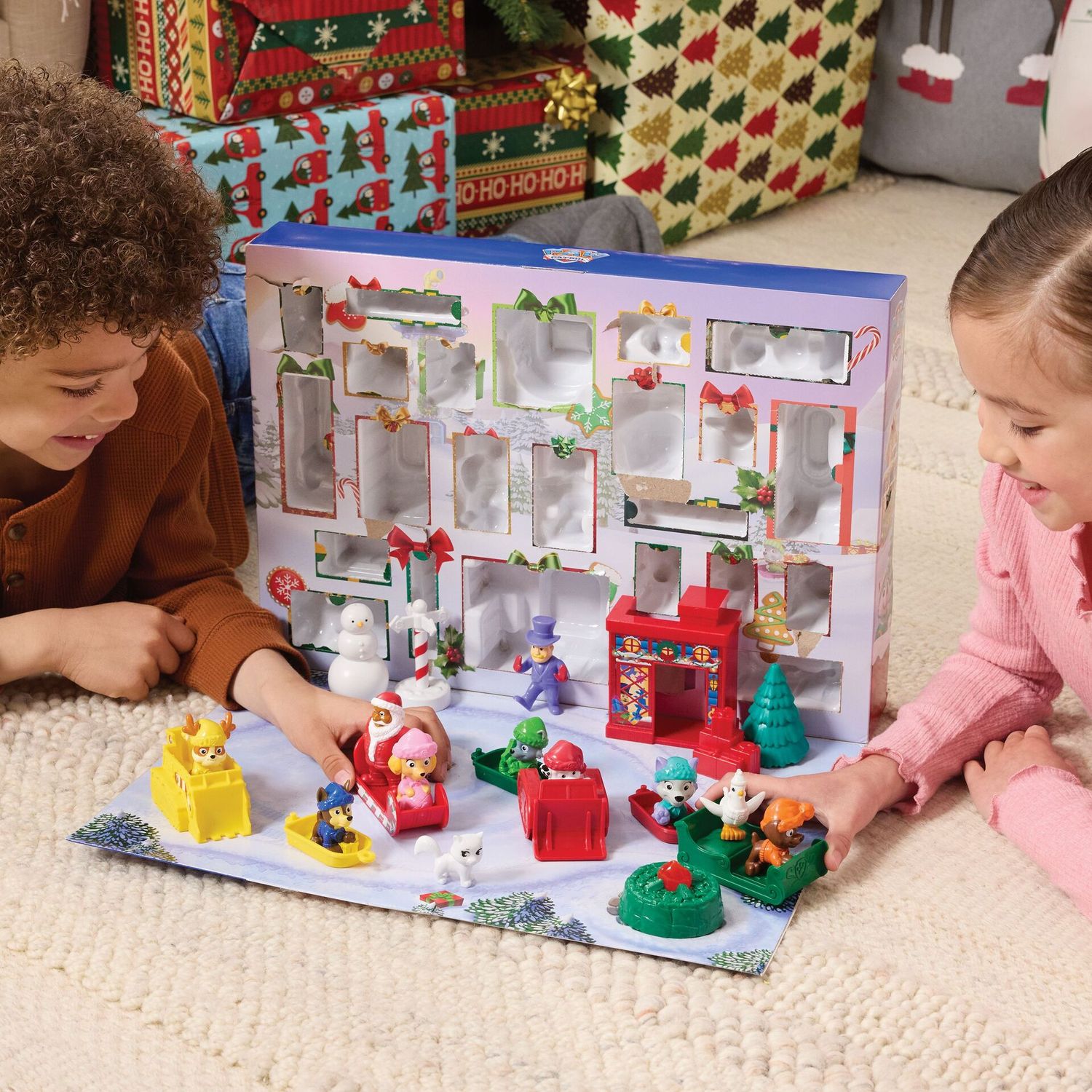 Mit dem spannenden Adventskalender von PAW Patrol lässt sich die Zeit bis Weihnachten ganz wunderbar vertreiben. Hinter jedem der 24 Türchen erwartet kleine PAW Patrol Fans eine tolle Überraschung: weihnachtliche Figuren und Fahrzeuge oder hochwertiges Spielzubehör aus Kunststoff, mit dem die Geschichten aus dem Episodenspecial zu Weihnachten zuhause nachgestellt werden können. Entdecken können Kinder zum Beispiel ihre Lieblingsfellfreunde Chase, Marshall, Skye, Rubble oder Rocky in zuckersüßen winterlichen Outfits oder auch einen Weihnachtsmann und Bürgermeister Besserwisser.