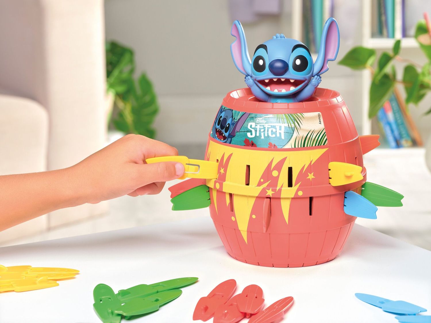 Pop Up Stitch ist ein mitreißendes Reaktions- und Geschicklichkeitsspiel, bei dem mehrere Spieler abwechselnd Surfbretter in ein Fass drücken. Mit jeder Aktion steigt die Spannung, denn an einer unerwarteten Stelle hüpft Stitch heraus und der Zugende ist ertrotzt! Das einfache, aber fesselnde Prinzip eignet sich hervorragend für Kinderrunden, Familienabende oder als schnelles Partyspiel. Kinder ab 4 Jahren sowie ihre Eltern erleben gemeinsam kurze, intensive Runden voller Spaß und Überraschung. Aufbauen, mitspielen, lachen – mehr braucht es nicht.