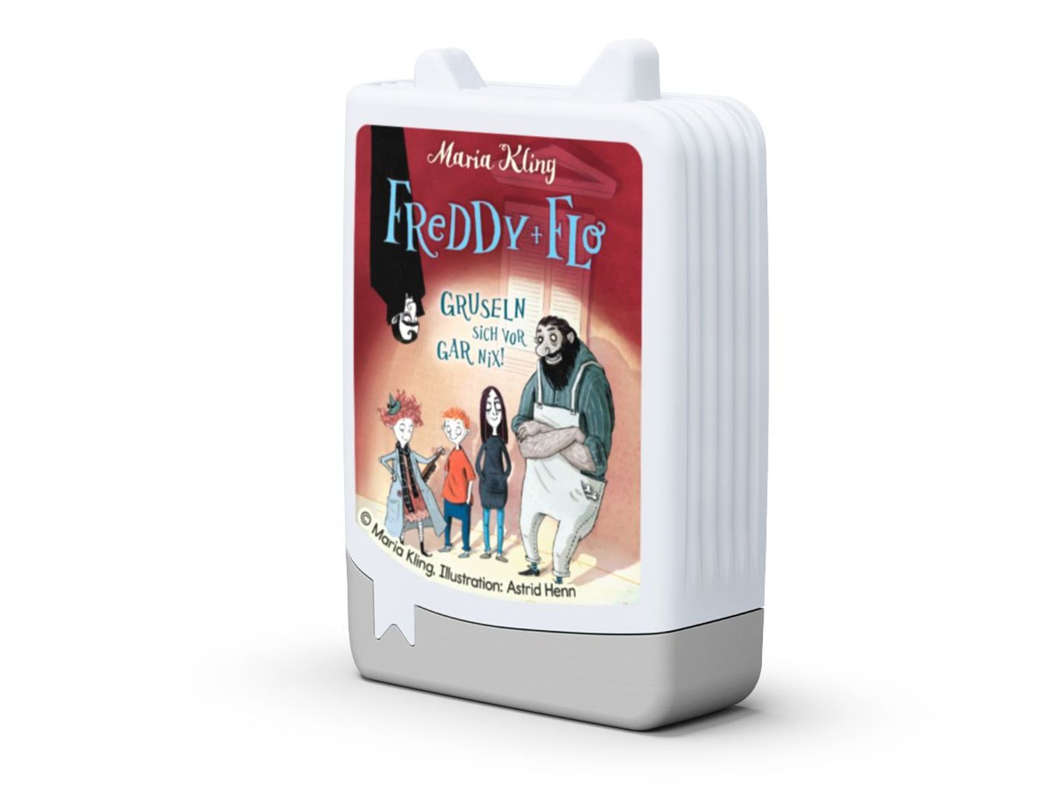 Mit der Toniefigur Freddy + Flo erleben Kinder ein herrlich gruseliges Abenteuer voller Humor, Spannung und Fantasie. Als Freddy mit seiner Familie in ein Haus neben dem Friedhof zieht, beginnt ein turbulentes Abenteuer mit Hexen, Vampiren und Werwölfen – gelesen von Marc-Uwe Kling.