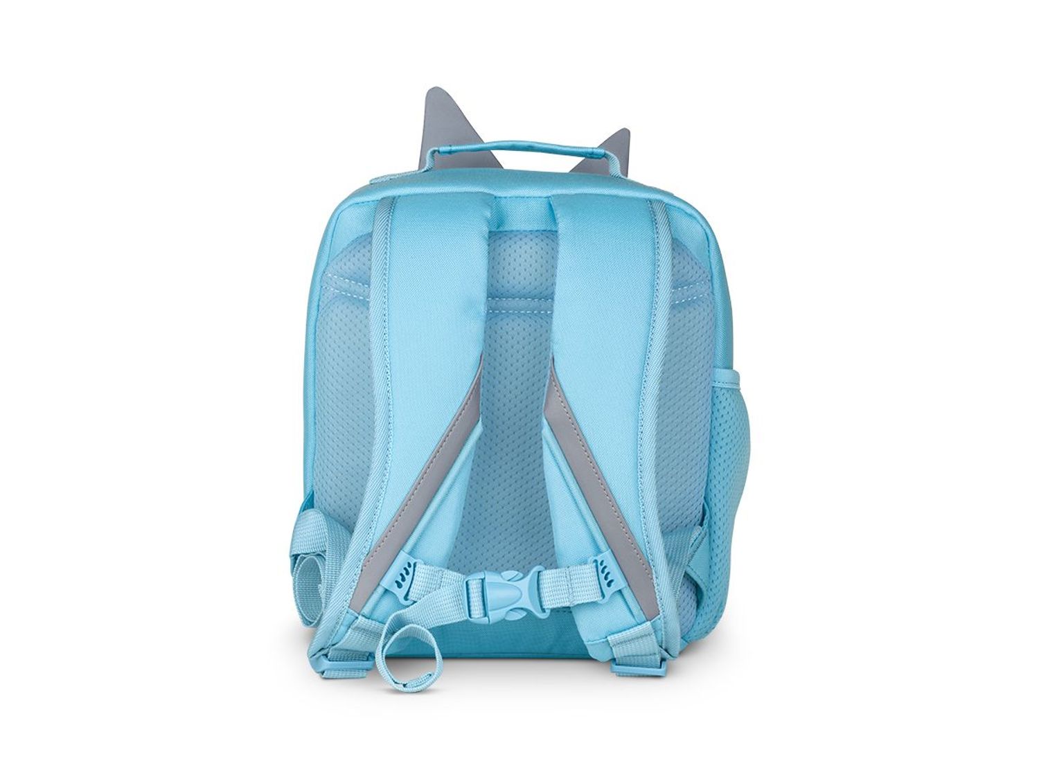 • Kindgerecht gestaltet: Hellblaues Design, verstellbare Träger, Brustgurt und reflektierende Elemente sorgen für Komfort und Sichtbarkeit.